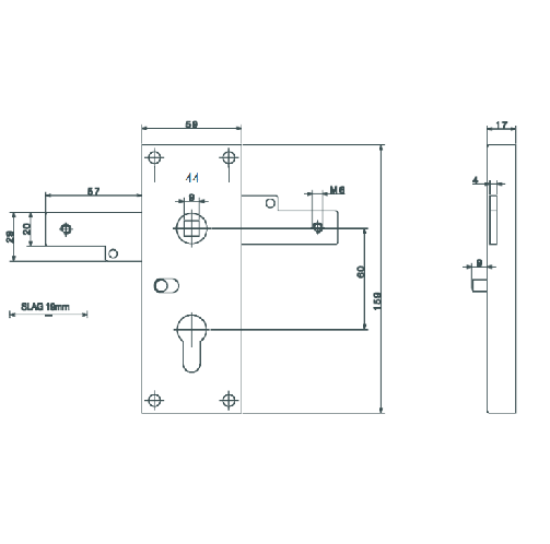 Bever Garagentorschloss – 8301 PZ seitlich schließend