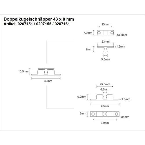 Doppelkugelschnäpper – Doppelkugelschnäpper MS blk 42mm Kugeln u.Federn a.STA M-Beschläge
