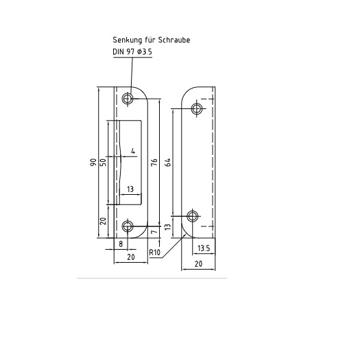 Fallenwinkelschliessblech gerundet 20 x 20 x 90 – silber lackiert