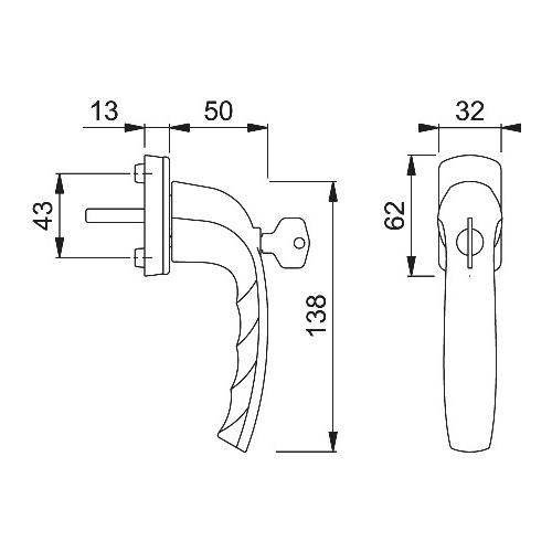 Fenstergriff – Fenstergriff NY 0810S/U10 Alu.F1/naturf.32mm abschl.HOPPE