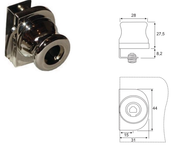 Glastürschloss BMB zum klemmen 4 -6 mm Glas – vernickelt poliert ohne Schliessblech ohne Kern