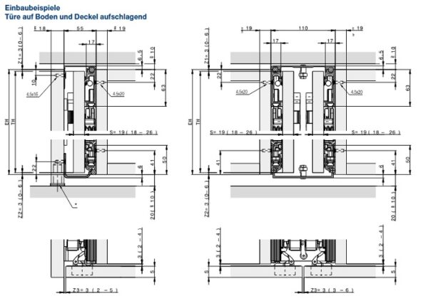 Beschlag zum Drehen und seitlich Einschieben von Holztüren bis 25 kg. Einheitliche,