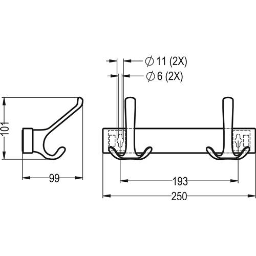 Huthakenleiste – Huthakenleiste 0822-0822 2 Hak.A.96mm LM silberf.elox.H.102mm HERMETA
