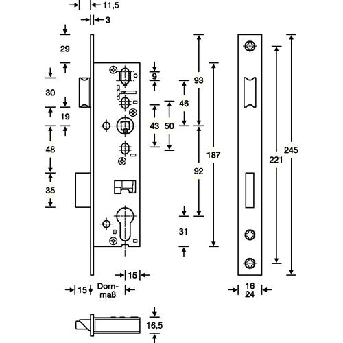 Rohrrahmen-Einsteckschloss – RR-Einsteckschl.PZW 24/25/92/8mm DIN L/R VA Riegelausschl.15mm 245mm SSF