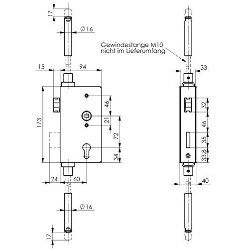 Schlosskasten – Schlosskasten 140UMV DIN L/R Maß A40xB94xC173mm Dornm.60mm AMF