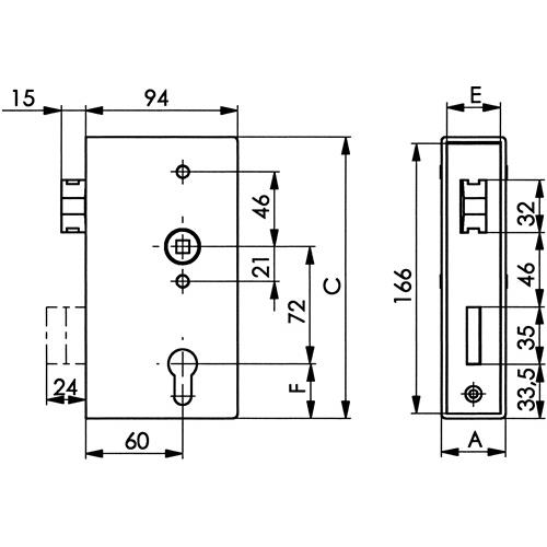 Schlosskasten – Schlosskasten 140UNIG DIN L/R Maß A30xB94xC172mm Dornm.60mm AMF