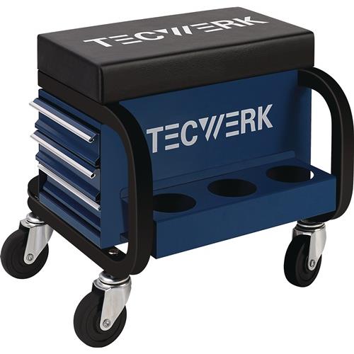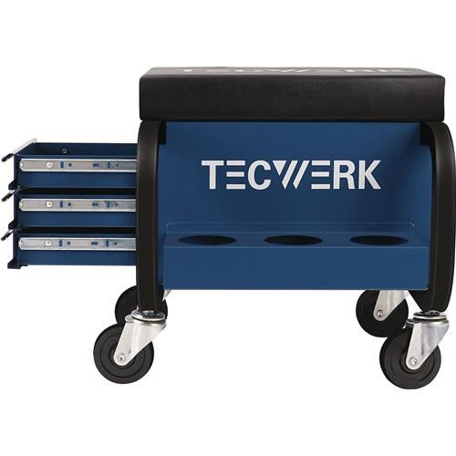 TECWERK Werkstattrollsitz – mit Rollen und Ablage Kunstlederpolster blau/schwarz